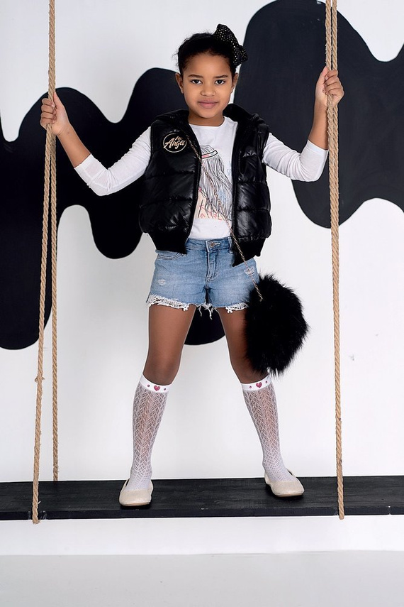 Podkolanówki ażurowe z błyszczącymi serduszkami dla dziewczynek.