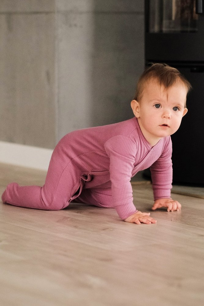 Bawełniany, jednolity pajac. Możliwość całkowitego rozpięcia umożliwia łatwe i szybkie ubieranie dziecka. Dodatkowy klin w kroku i stopery nad pietami zapewniają swobodę użytkowania i nie krępują ruchów dziecka.