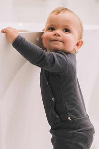 Praktyczne i wygodne body. Wykonane z mięciutkiej, prążkowanej bawełny. Zapinane na bezniklowe napki. Komfortowe dla najmniejszych, dzięki możliwości całkowitego rozpięcia.