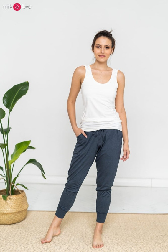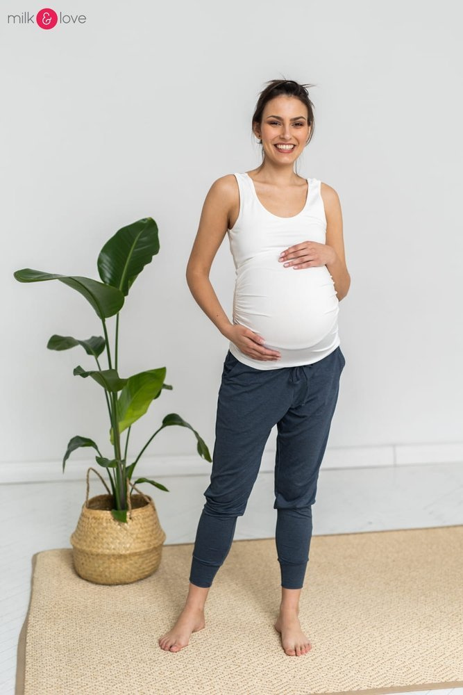 - Elastyczna dzianina pomieści nawet bardzo duży ciążowy brzuszek