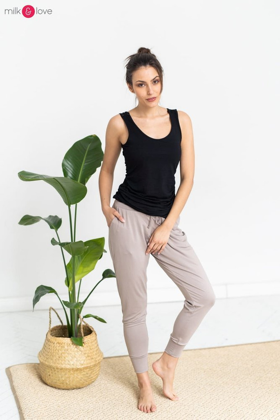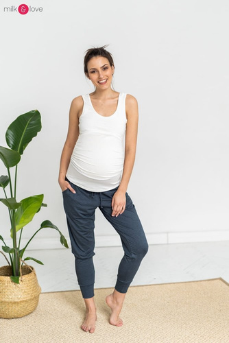 • Elastyczna dzianina pomieści nawet bardzo duży ciążowy brzuszek