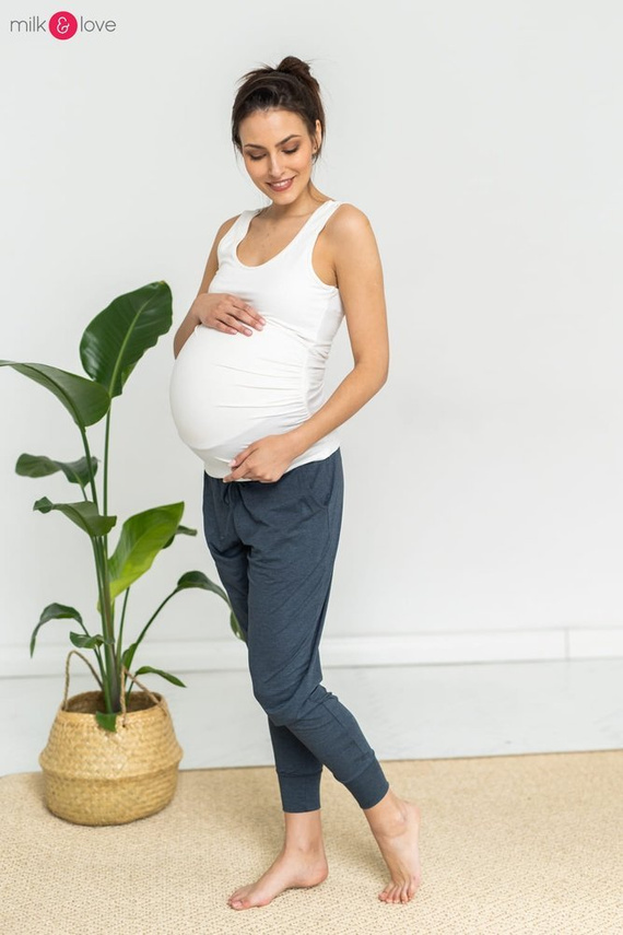 - Elastyczna dzianina pomieści nawet bardzo duży ciążowy brzuszek