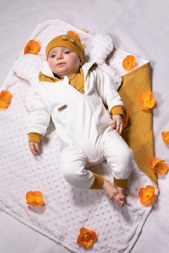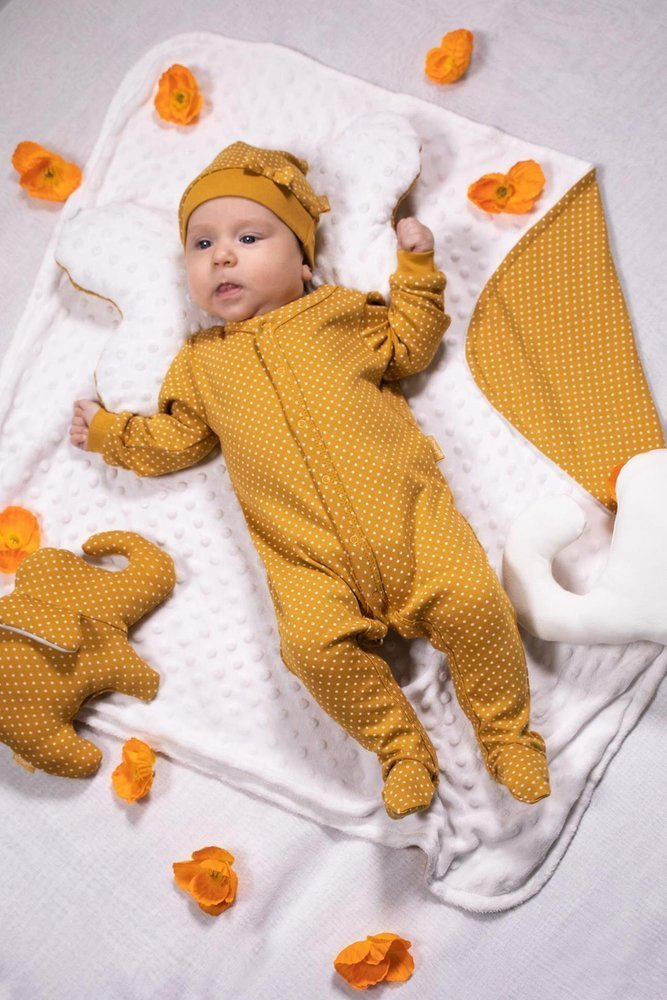 Jedna strona Motylka jest z ciepłego minky, druga w kropeczki. W środku wypełniony antyalergicznym, atestowanym puchem silikonowym, który zachowuje swoje właściwości przez długi czas, dzięki temu Motylek jest bardzo sprężysty i nie zmienia swojego kształtu nawet przez lata.