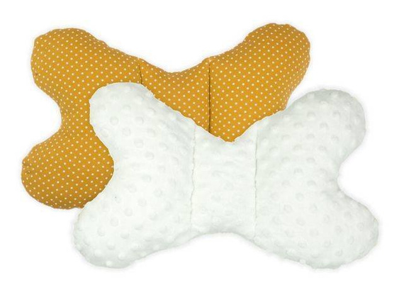 Motylek zapewnia komfort podczas podróży, niweluje wstrząsy w czasie jazdy samochodem lub wózkiem. Dzięki specjalnemu wyprofilowaniu idealnie dopasowuje się zarówno do główki dziecka, jak i do fotelika samochodowego. Motylek umili każdą podróż i utuli zmęczonego Maluszka do snu.