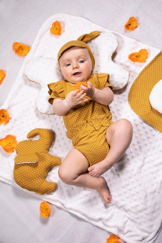 Zapytaj o produktMusztardowe bloomersy dla niemowląt. Idealne na wiosnę i lato. Nieuciskający ściągacz w pasie utrzymuje ubranko we właściwym miejscu. Odpowiedni krój zapewnia dziecku komfort noszenia i nie krępuje ruchów podczas zabawy oraz codziennych aktywności. Bloomersy można dowolnie łączyć z innymi ubrankami z kolekcji Michalina, tworząc unikatowe stylizacje. Bloomersy doskonale sprawdzą się podczas wakacyjnych wyjazdów i spacerów w upalne dni. Ten typ spodenek pozwala w modny sposób ukryć nieelegancką pieluszkę w letnie dni.