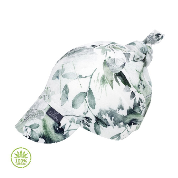 skład :100% wiskoza bambusowa najwyższej jakości. Daszek lekko usztywniony wszytą wewnątrz fizeliną. Nadruk na tkaninie nie zmienia kolorów nawet po wielokrotnym praniu, jest przyjazny dla człowieka i środowiska, potwierdza to Certyfikat OEKO-TEX 100 klasa I. Wyjątkowe zalety tkanin bambusowych potwierdził Instytutu Matki i Dziecka wydając pozytywną opinię.