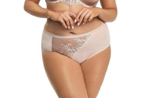 . Piękne, pełne figi wykonane z mięciutkiej mikrofibry. Na przodzie delikatna wstawka tiulowej siateczki ozdobiona haftem. W pasie płaska wygodna gumka.