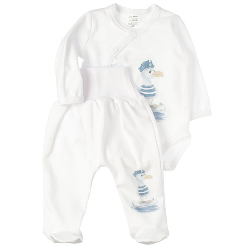 Zestaw niemowlęcy, który składa się z body i półśpiochów. Ubranka wykonane ze 100% mięciutkiej bawełny, ozdobione oryginalnym nadrukiem zapewnią zadowolenie każdego z naszych Milusińskich.