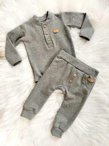 Gumka w pasie zapewnia odpowiednią przyczepność, jednocześnie zachowując komfort dziecka. Swobodny krój spodni zapewni maluszkowi wygodę noszenia podczas zabawy i innych codziennych aktywności. Idealne w zestawieniu z body Mieszko.