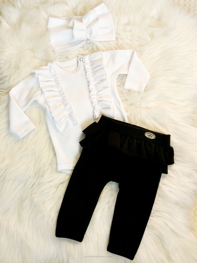 Gumka w pasie zapewnia odpowiednią przyczepność, jednocześnie zachowując komfort dziecka. Swobodny krój spodni zapewni maluszkowi wygodę noszenia podczas zabawy i innych codziennych aktywności. Idealne w zestawieniu z body Lola.