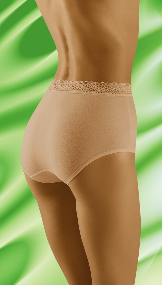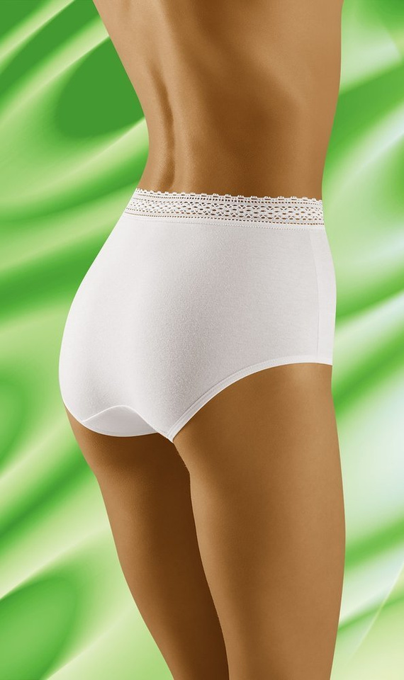 Figi damskie o pełnym kroju, zabudowane wykonane z wysokiej jakości bawełny ekologicznej z dodatkiem lycry. Pas ozdobiony ażurową koronką.
