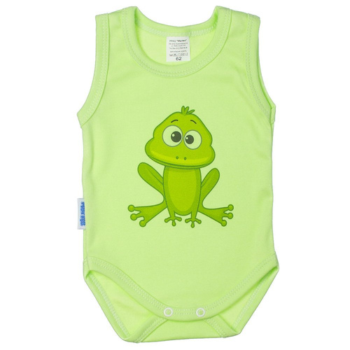 Wygodne body niemowlęce na ramiączkach. Z przodu umieszczono nadruk, który wykonano trwałą i bezpieczną metodą farb wodnych. Dla wygody przewijania i ubierania, nasze body rozpinane jest kroku. Zatrzaski wykonano z antyalergicznego, bezpiecznego tworzywa bez dodatku niklu. To niezbędny element wyprawki niemowlaka.
