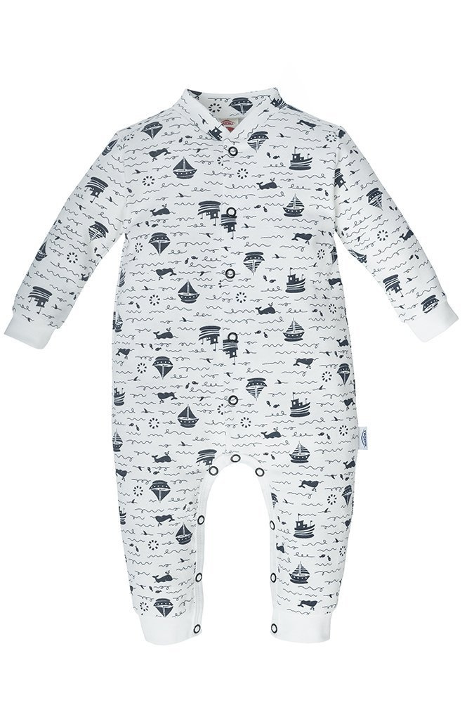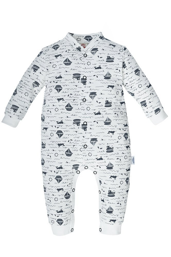 Bawełniany pajac z motywem statków. Możliwość całkowitego rozpięcia umożliwia łatwe i szybkie ubieranie dziecka. Zapewnia swobodę użytkowania i nie krepuje ruchów dziecka. Dostępny w rozmiarach 68-98.
