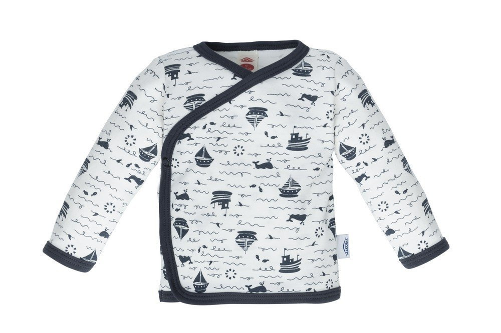 Zapytaj o produktKaftanik niemowlęcy w nadruk statków. Wykonany ze 100% bawełny. Do produkcji zatrzasków użyto antyalergicznego, bezniklowego tworzywa. Wykończony lamówką. Nadruk wykonano bezpieczną metodą farb wodnych, który zapewnia im trwałość nawet po wielu praniach.