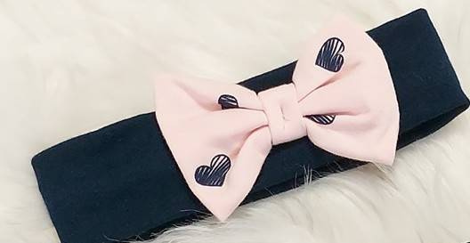 Serduszka opaska z kokardką Bambarillo granatowo-różowy
