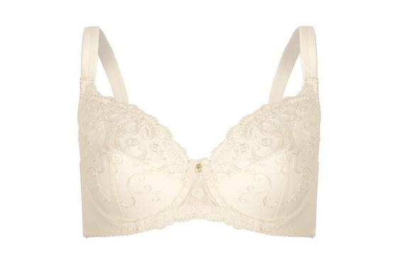Elegancki, a zarazem subtelny biustonosz typu semi-padded. Bardzo dobrze stabilizuje i zbiera nawet mniej jędrny biust. Dzięki usztywnieniu dolnej części miski daje piersiom większe podparcie. Uroku dodaje mu uwodzicielski haft włoskiego producenta Ricamificio Di Fagnano znajdujący się z przodu. Na środku biustonosza została umieszczona delikatna kokardka dodająca mu wdzięku. Dla większego komfortu noszenia zostały zastosowane szerokie, ozdobne ramiączka regulowane i nieodpinane.