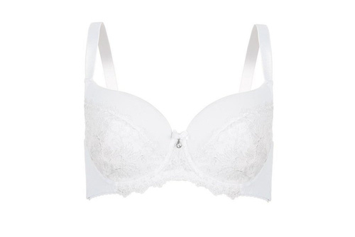 Stylowy biustonosz o miseczkach w całości usztywnionych, wykonanych z pianki oraz włoskiego haftu Ricamificio Di Fagnano,