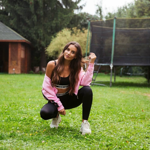 Top w sportowym stylu z odkrytymi plecami: tył stanowią fantazyjnie skrzyżowane gumowe taśmy. Przód wykonany z podwójnej warstwy materiału (bez poduszek). Możliwość dokupienia pasujących do kompletu legginsów.