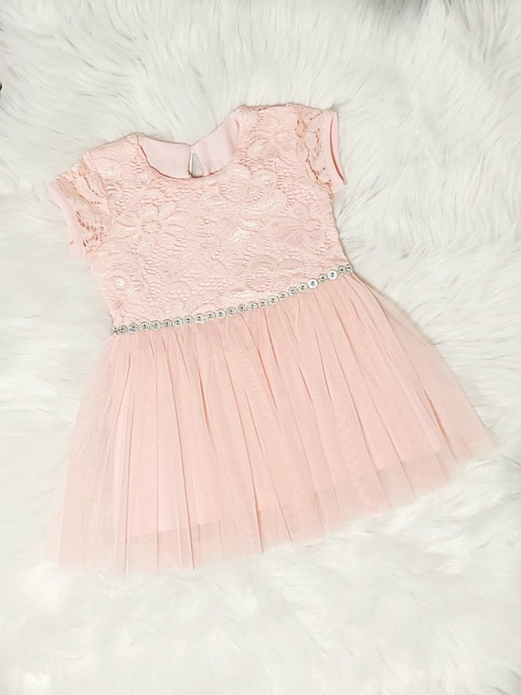 Dziewczęca, koronkowa sukienka. Luźny fason nie krępuje ruchów.