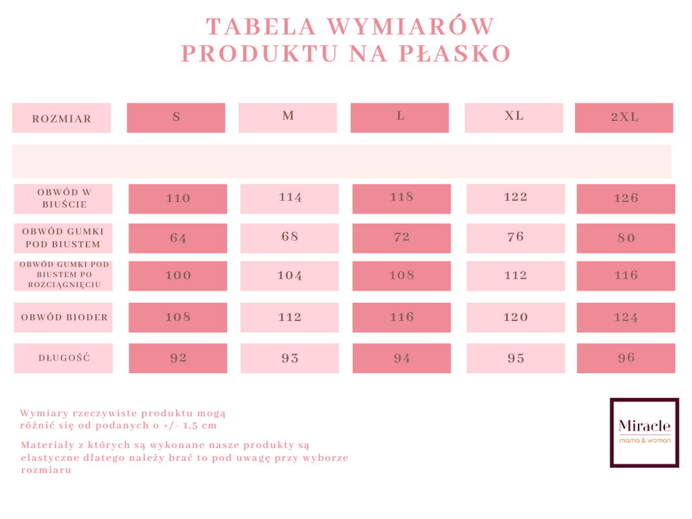 | Rozmiar | Obwód biustu | Obwód bioder |