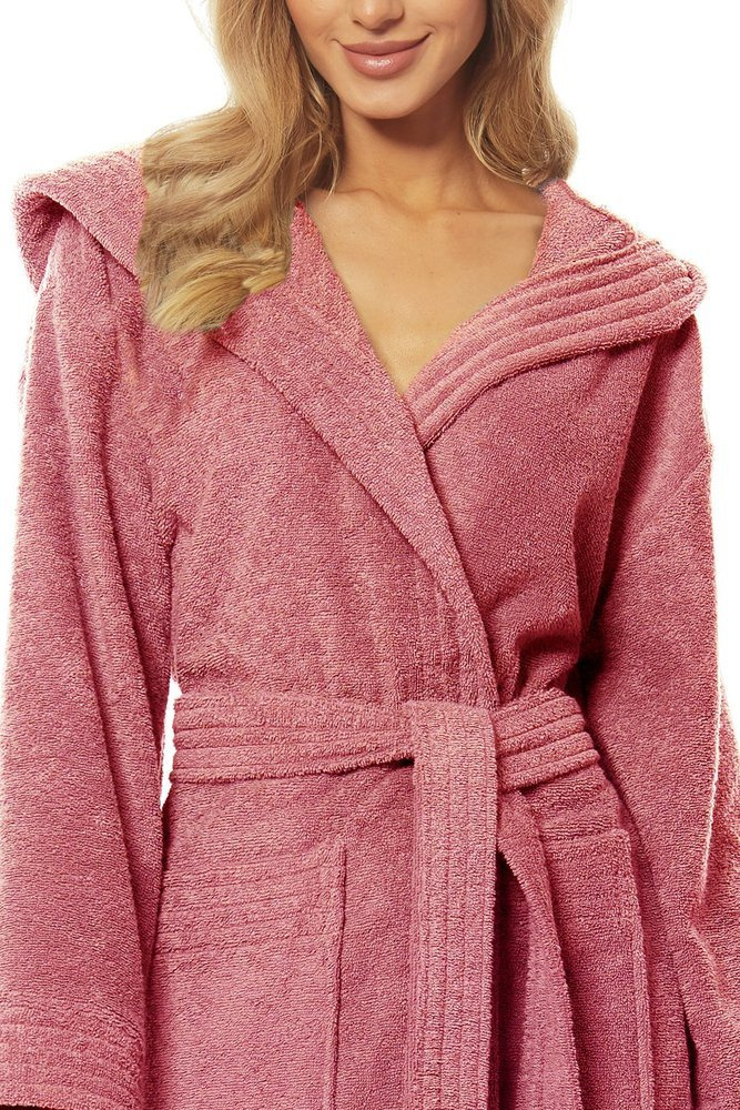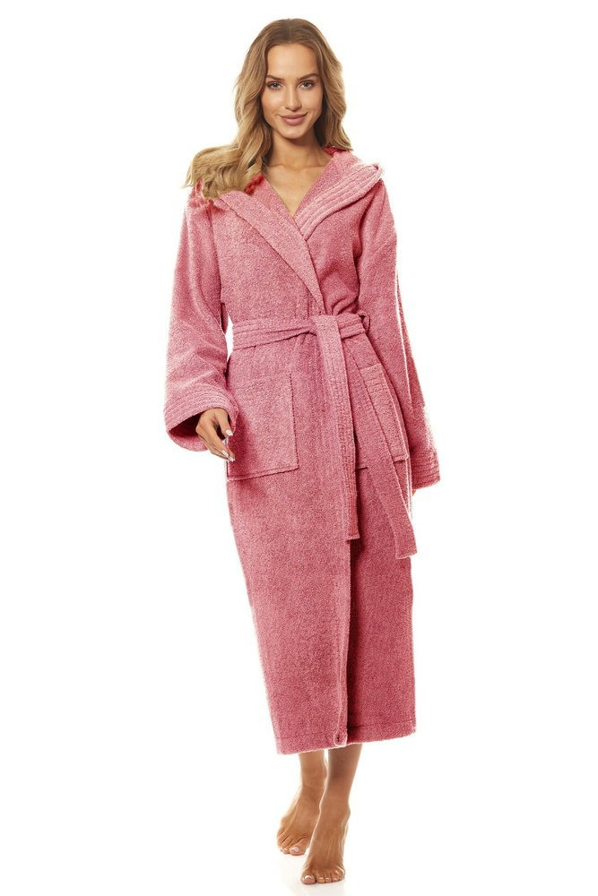 2102 Długi Szlafrok Damski Frotte L&L - różowy pudrowy