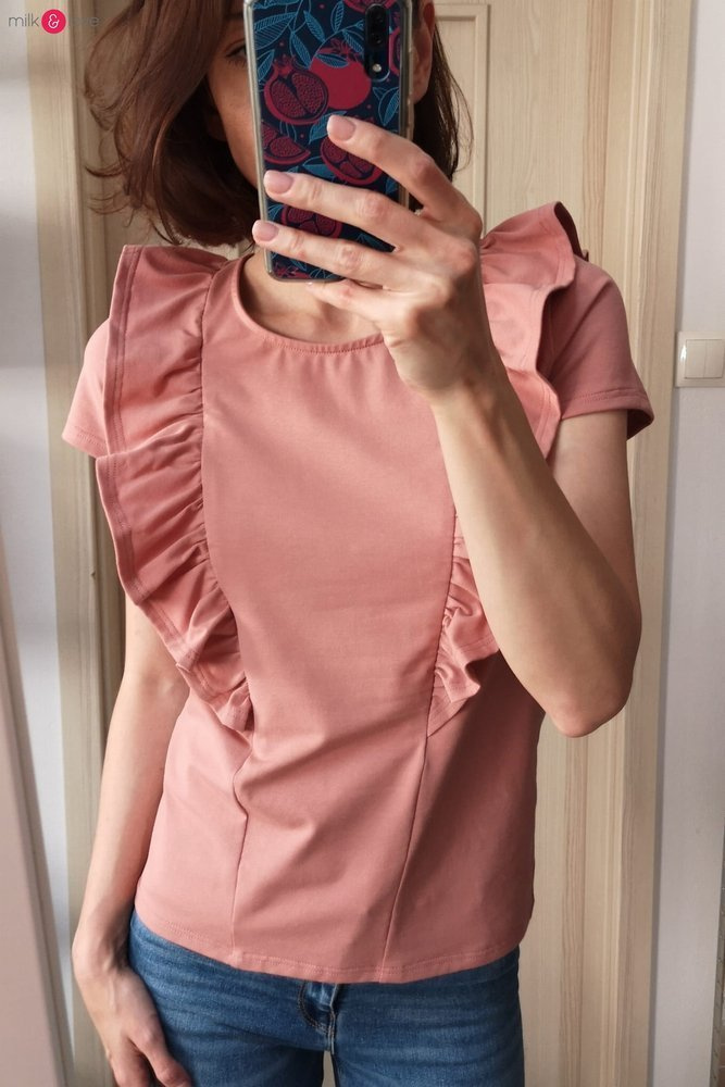 - Luźny krój bluzki, w którym będziesz się swobodnie czuć po porodzie