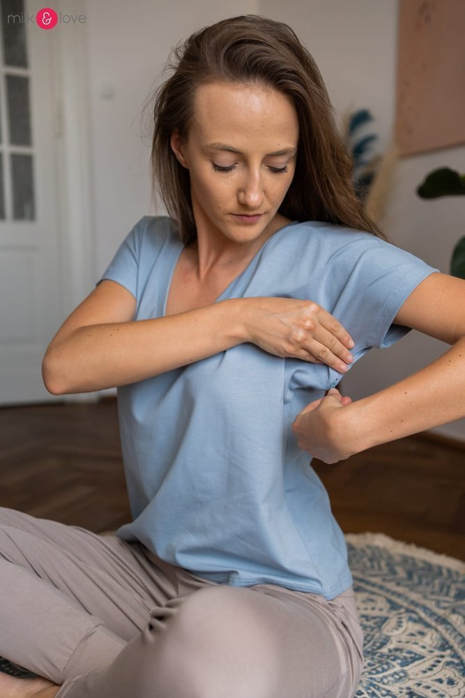 Two Ways bluzka ciążowa i do karmienia dwustronna krótki rękaw Milk&Love błękitny