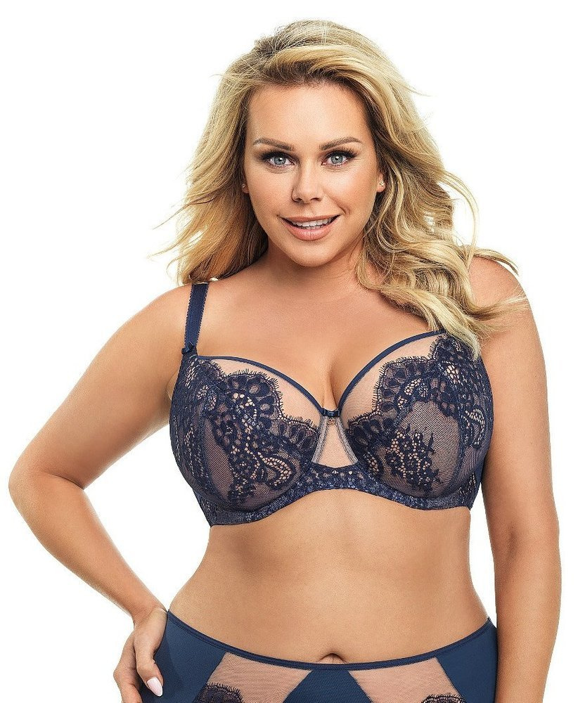 Biustonosz miękki w pięknym granatowym kolorze, kierowany dla kobiet ze średnim i dużym