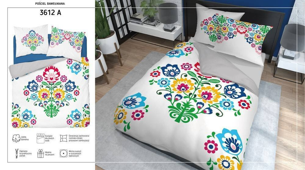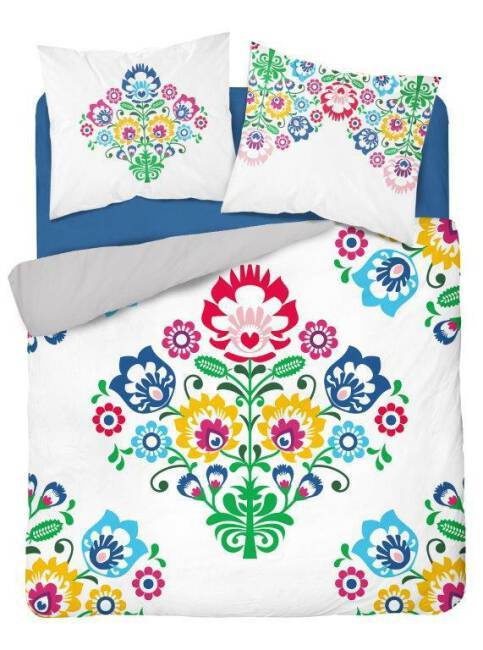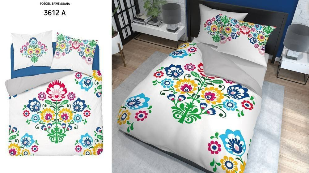 3612 A Pościel bawełniana Łowicka wycinanka  kwiaty kurpiowska Detexpol biały/szary