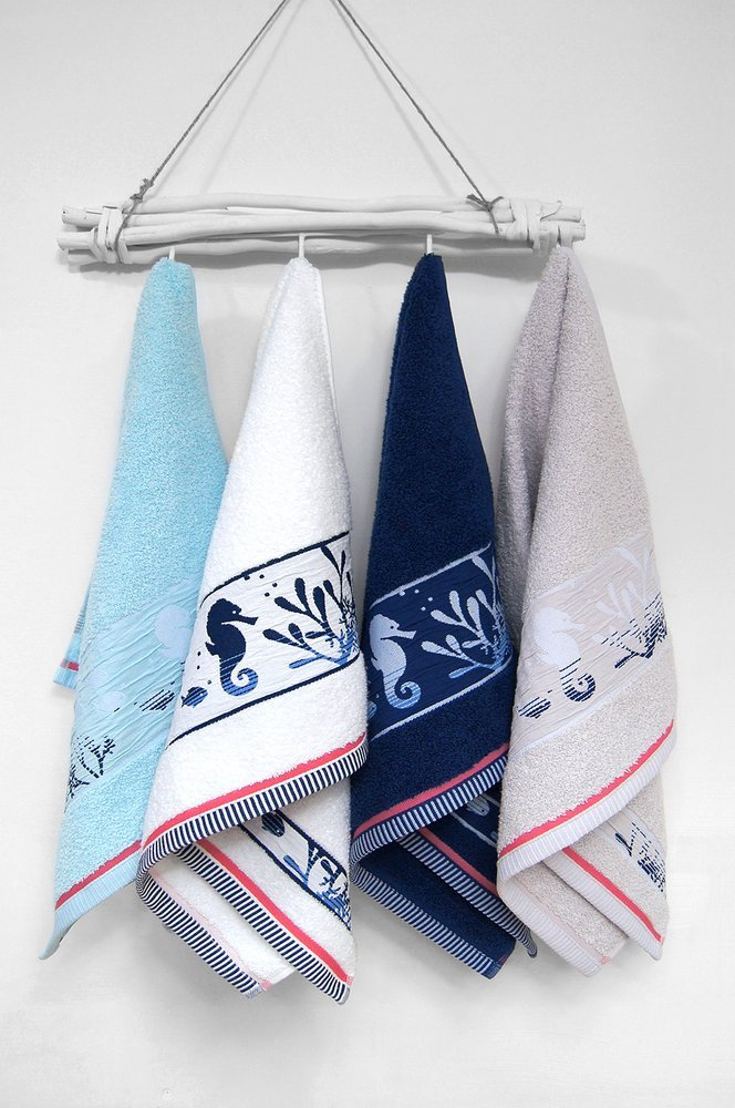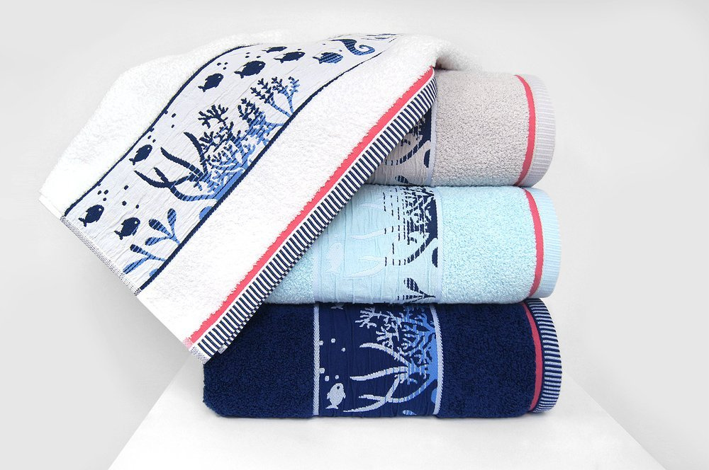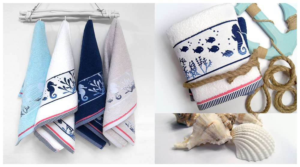 Szum morza, głębia oceanu, promienie słońca, jeśli marzysz o wakacyjnym akcencie w swojej łazience ręcznik Kriti jest dla Ciebie. Nie od dziś wiadomo, że marynistyczne dodatki są bardzo modne, wprowadzają optymistyczny, oryginalny charakter we wnętrzach. Najnowsza kolekcja Kriti powstała z myślą o jasnych, minimalistycznych łazienkach, którym dodadzą świeżości, szczyptę koloru i energii. Cała kolekcja jest w morskich kolorach z dodatkiem koralu. Design podwodnego świata na marszczonej bordiurze, przywodzi na myśl wakacje, kąpiel w morzu i beztroski wypoczynek na plaży.