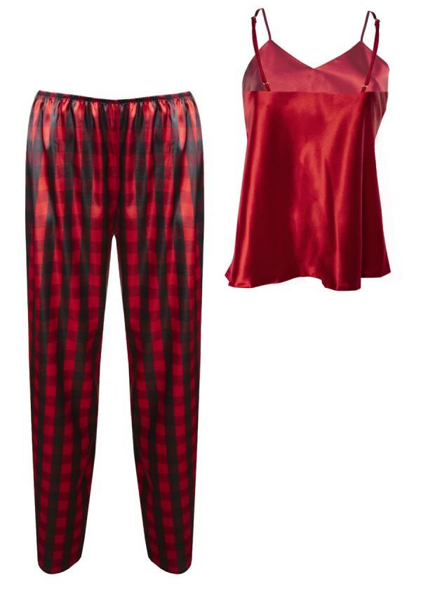 Prosty, zmysłowy dwuczęściowy komplet składający się z koszulki oraz długich spodni. Odważny dekolt w kształcie litery „V”, który jest niezwykle kuszący. Góra koszulki wykonana z drukowanej wzorzystej satyny. Wąskie ramiączka z regulacją zapewnią Tobie poczucie komfortu podczas snu. Spodnie proste, długie satynowe na cienkiej gumce dodające elegancji