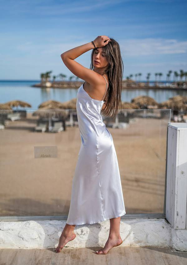 Gustowna koszulka nocna wykonana z zwiewnej, delikatnej dla ciała satyny.