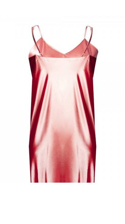 Ramiączka cienkie i regulowane dzięki którym można uzyskać odpowiednio odkryty dekolt. Dół uszyty z delikatnej szlachetnej satyny ozdobiony śliczną czarną koronką.