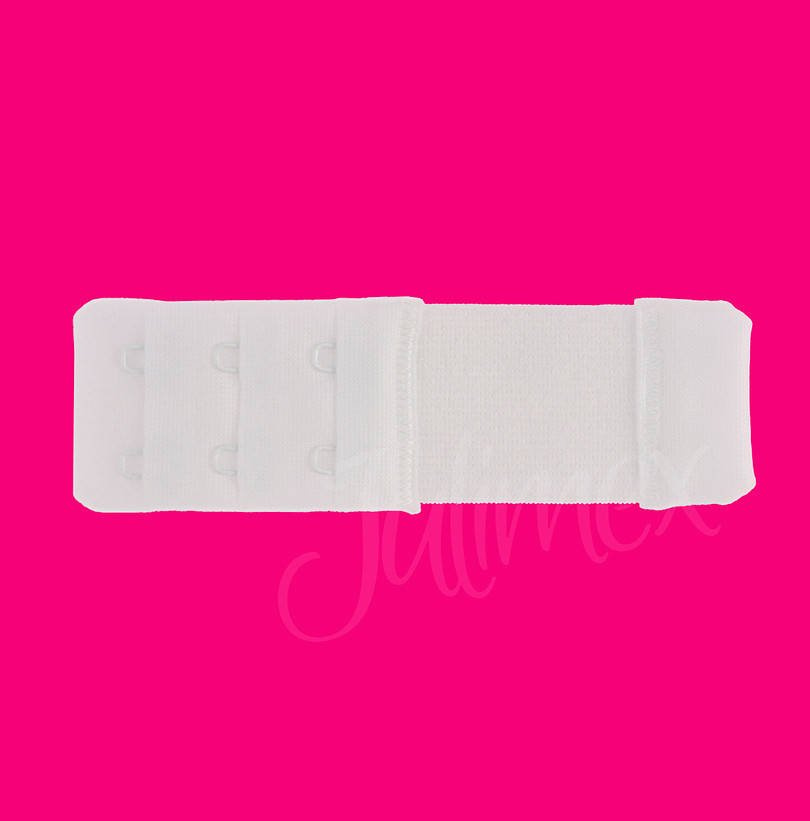 Przedłużacz obwodu biustonosz z gumką - najprostsza metoda powiększania obwodu biustonosza. Uniwersalny rozstaw haftek daje możliwość dopięcia do standardowych zapięć przy biustonoszu.