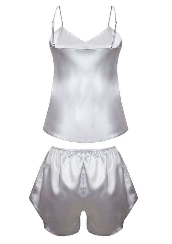 Karen Komplet piżamka damska satyna DKaren - srebrny
