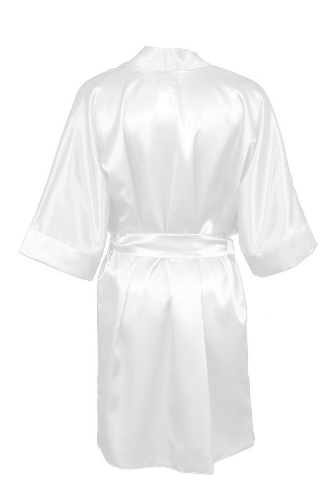 Podomka wykonana z lejącej satyny, o komfortowym kroju jest obowiązkowym elementem garderoby eleganckiej kobiety i sprawdzi się w każdej sytuacji. Rękawy kimonowe, które dają możliwość noszenia na dwa sposoby: podwinięte mankiety lub proste. Wszystko zależy od tego jaki masz nastrój. Ta krótka satynowa podomka o kroju kimona posiada pasek, który seksownie podkreśla talię.
