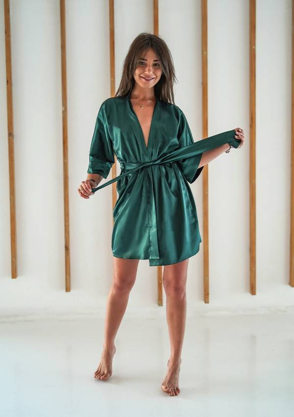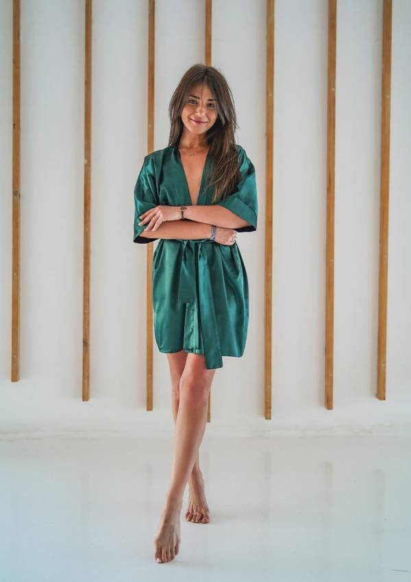 Podomka wykonana z lejącej satyny, o komfortowym kroju jest obowiązkowym elementem garderoby eleganckiej kobiety i sprawdzi się w każdej sytuacji. Rękawy kimonowe, które dają możliwość noszenia na dwa sposoby: podwinięte mankiety lub proste. Wszystko zależy od tego jaki masz nastrój. Ta krótka satynowa podomka o kroju kimona posiada pasek, który seksownie podkreśla talię.