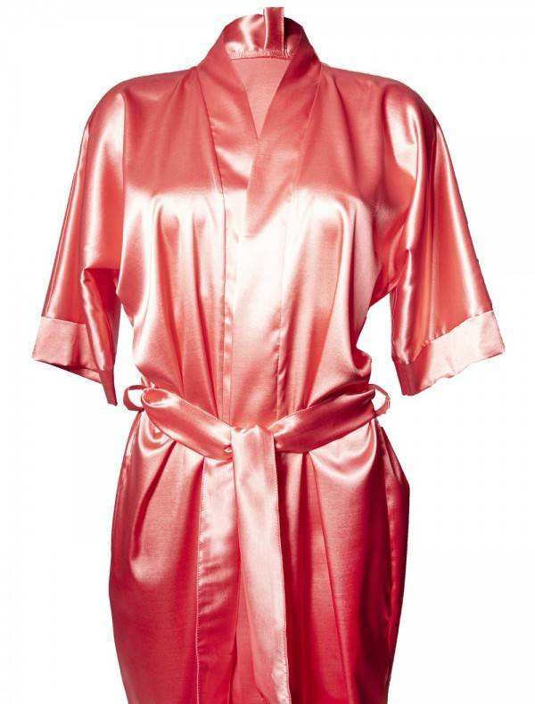 Kusząca, a zarazem elegancka satynowa podomka, która powinna się znaleźć w garderobie każdej kobiety. Uszyta jest ze zwiewnej satyny, wyposażona w satynowy pasek, który seksownie podkreśli talię. Rękawy szerokie kimonowe.