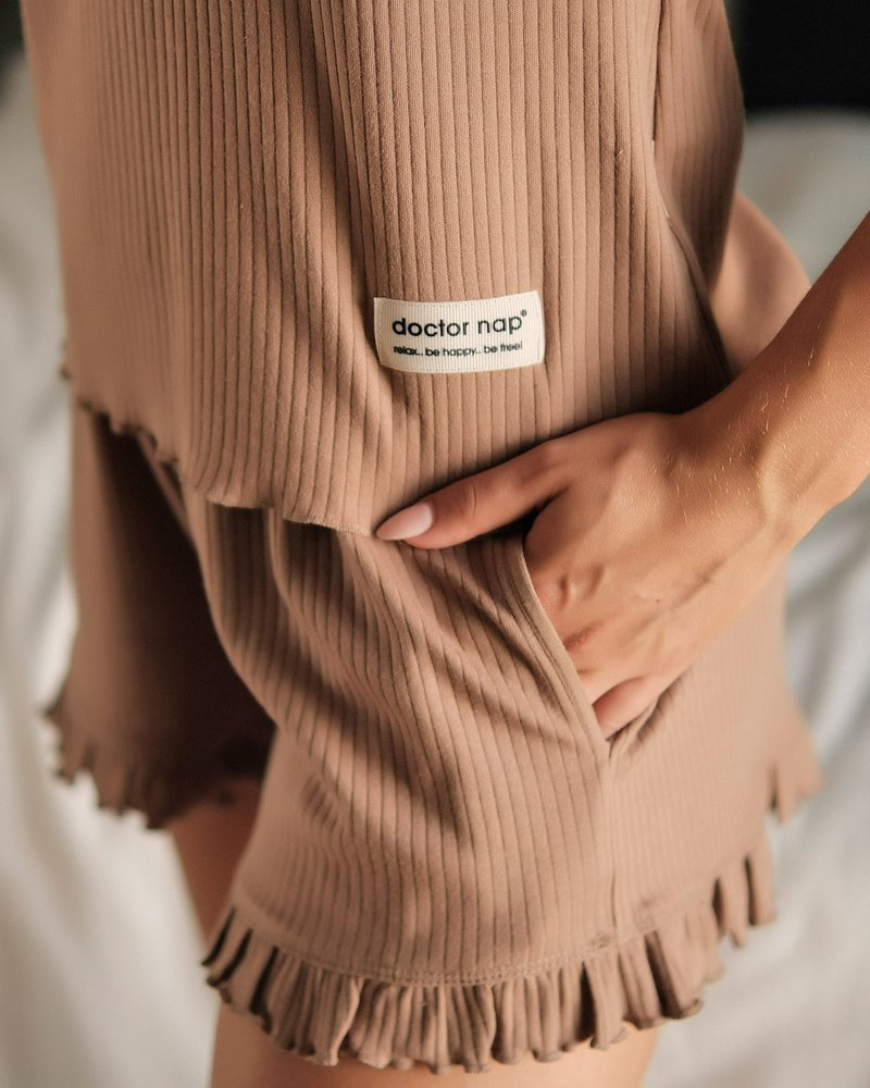 Dwuczęściowa piżamka firmy Doctor Nap wykonana z wysokogatunkowej bawełny. Idealna na dobry sen i na wspaniały początek dnia przy pierwszej porannej kawie. Luźna bluza z krótkim rękawem, nie krępuje ruchów i ładnie podkreśla sylwetkę. Dekolt okrągły, bluzka jednolita. Spodnie krótkie, jednolite, w pasie wykończone gumką. Nogawki wykończone falbanką. Przyjemna w dotyku piżama, utrzymana jest w ciekawej kolorystyce.