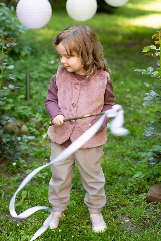 Kamizelka dziecięca Julia uszyta z miękkiej dzianiny, to modny element garderoby każdego malucha. Luźny fason nie krępuje ruchów dziecka i zapewnia mu komfort podczas zabawy oraz codziennych aktywności. Wewnętrzna warstwa kamizelki to miła w dotyku 100% bawełna, przyjazna dla delikatnej skóry dziecka.