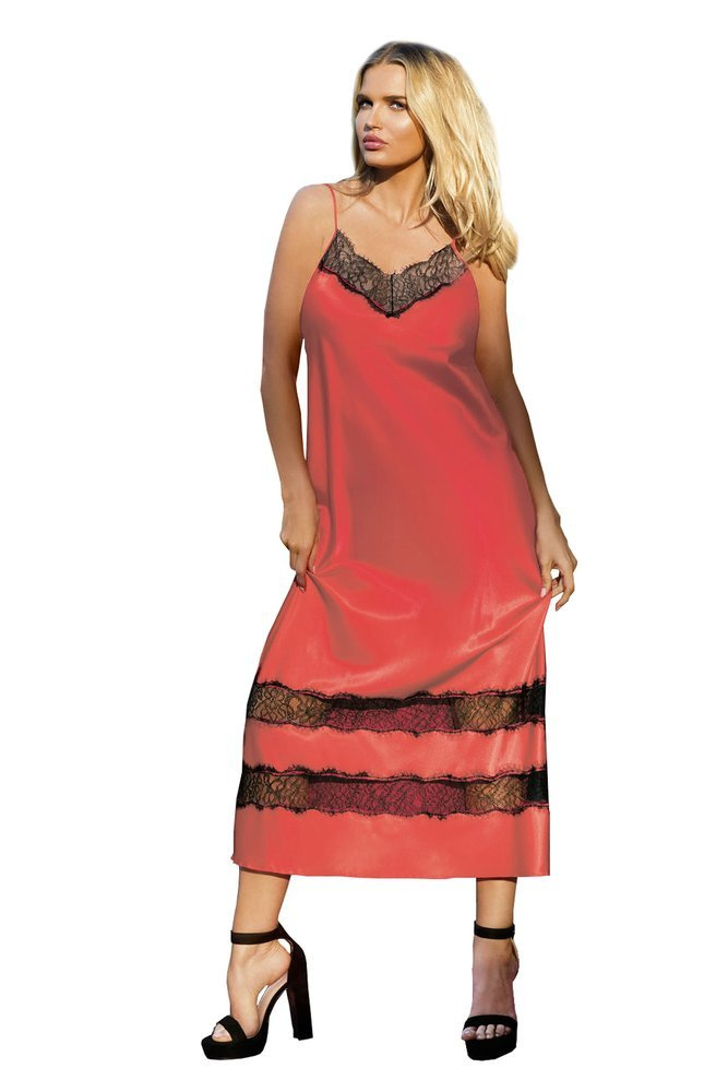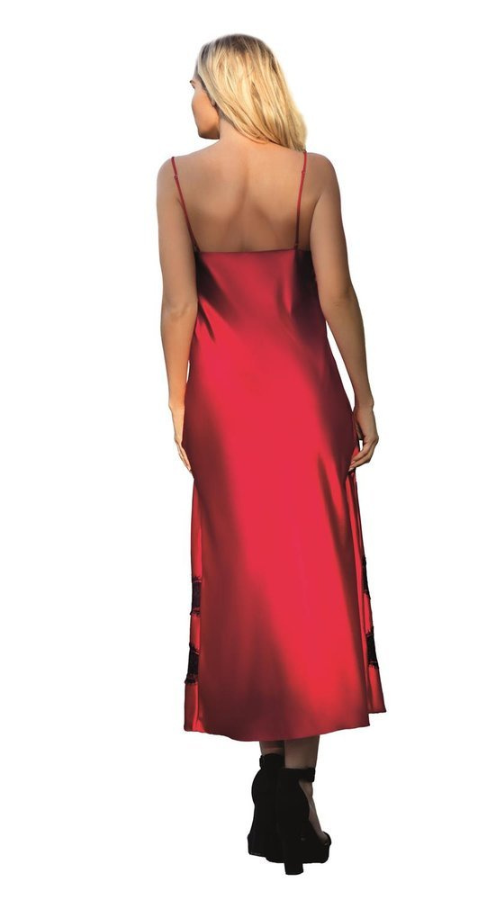 Gustowna koszulka nocna wykonana z zwiewnej, delikatnej dla ciała satyny. Regulowane ramiączka dzięki którym można uzyskać odpowiednio odkryty dekolt. Koronkowe zdobienia dodają elegancji.