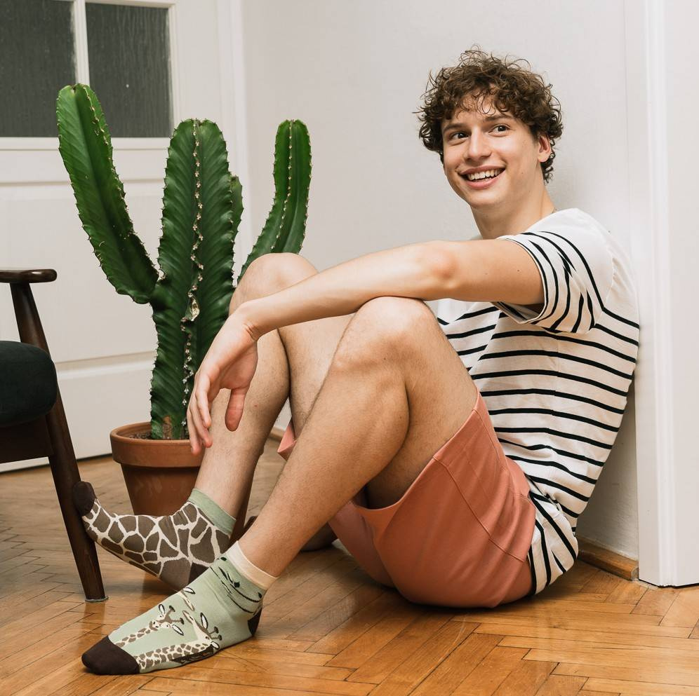 Bawełniane zakostki męskie. Ozdobione kolorowym wzorem.