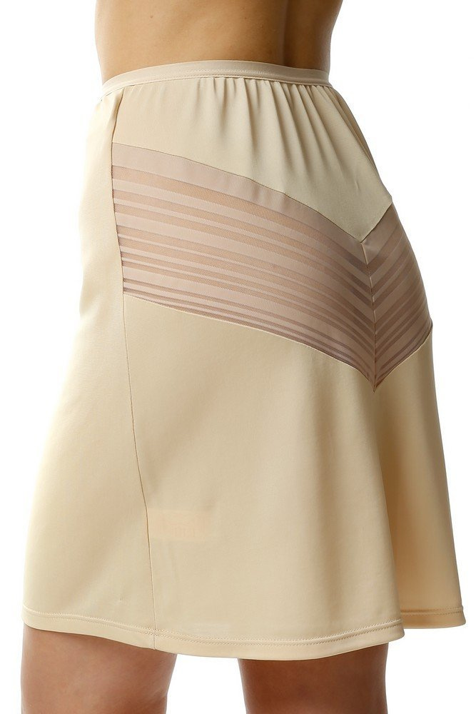 Prosta w formie półhalka o długości za kolano, delikatnie podkreślającej walory kobiecego ciała. W pasie na gumce, długość przed kolano . Doskonała rzecz, która przyda się każdej kobiecie. Wykonana z dzianiny wiskozowej, mającej doskonałe zalety zdrowotne i elektrostatyczne. Materiał ten jest antybakteryjny, higroskopijny, termoaktywny, nie uczula i nie elektryzuje się.