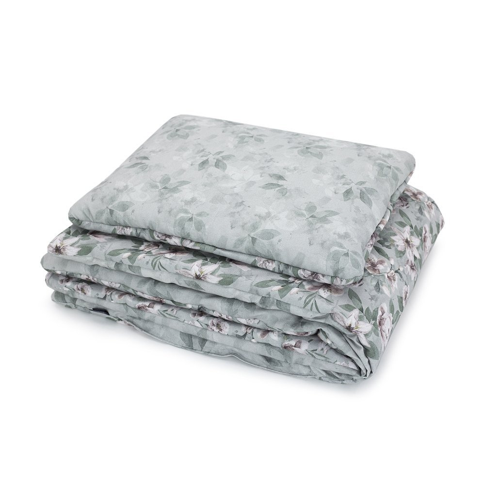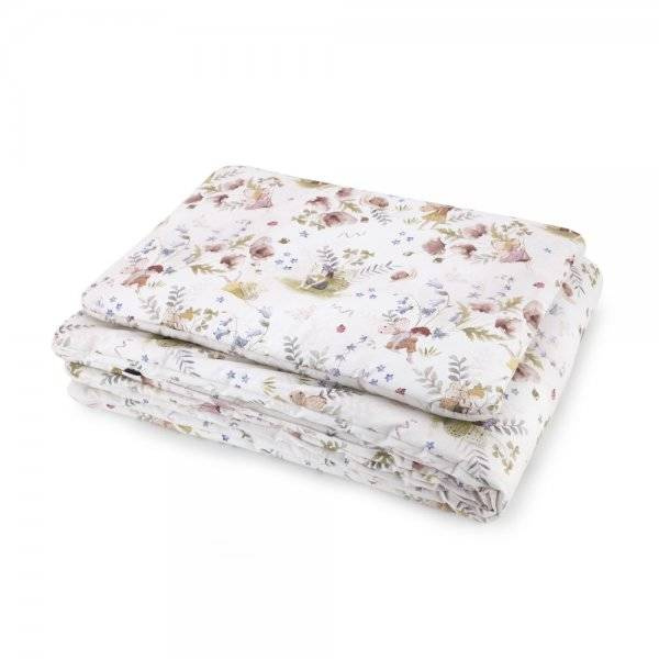 Cieplutki komplet pościeli z wszytym wypełnieniem, doskonały do kołyski, łóżeczka i na popołudniową drzemkę.