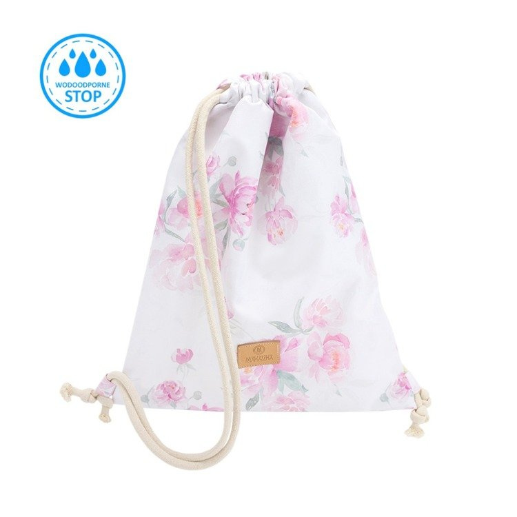 Długie bawełniane sznurki pozwalają stosować worek jako plecak zarówno dla dziecka, jak i dla mamy. Długość sznurka można regulować związując go na końcach, dzięki czemu już przedszkolak może nosić plecak swobodnie.