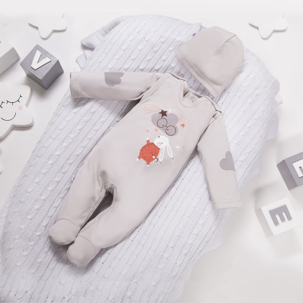 Mellow Śpiochy niemowlęce z nadrukiem Ewa Klucze- szary