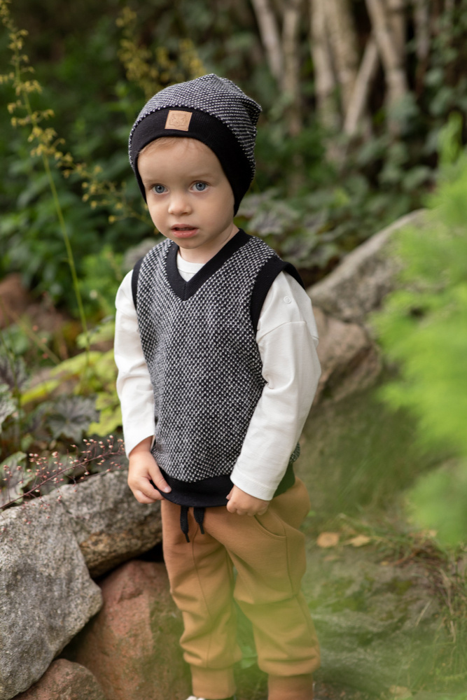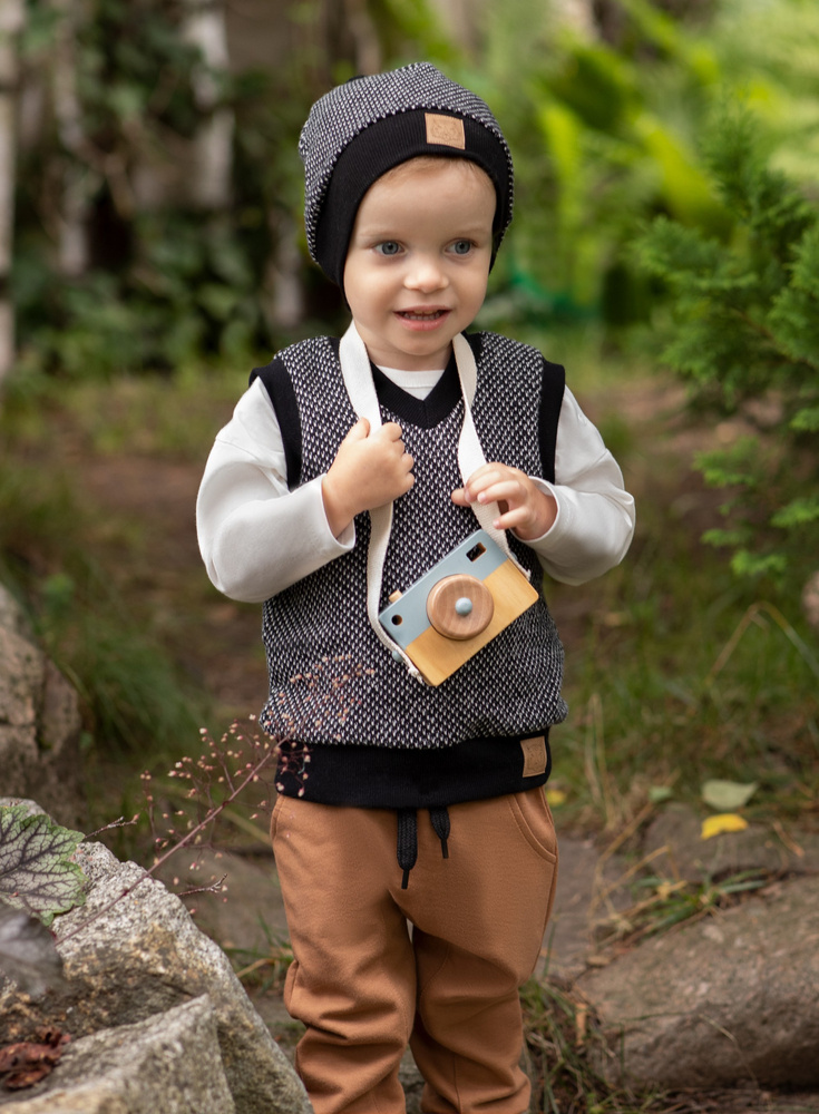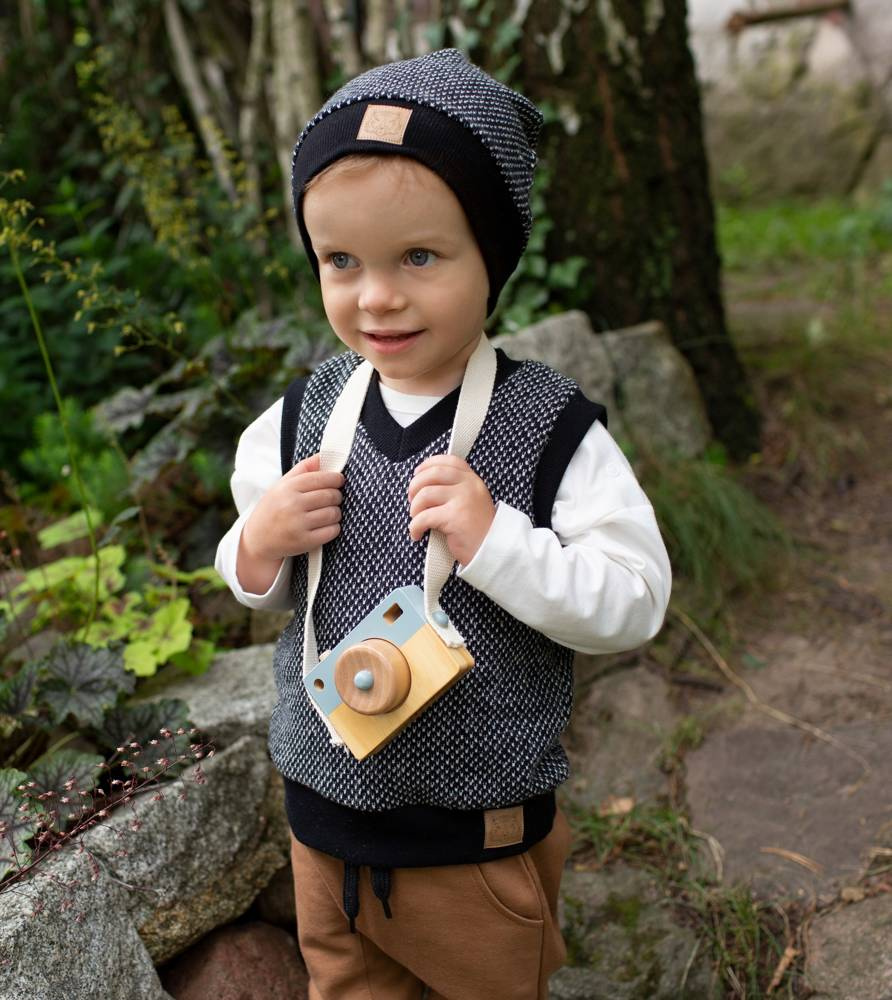 Zapytaj o produktKamizelka dla chłopca uszyta z miękkiej dzianiny, to modny element garderoby każdego malucha. Luźny fason nie krępuje ruchów dziecka i zapewnia mu komfort podczas zabawy oraz codziennych aktywności. Wewnętrzna warstwa kamizelki to miła w dotyku 100% bawełna, przyjazna dla delikatnej skóry dziecka.