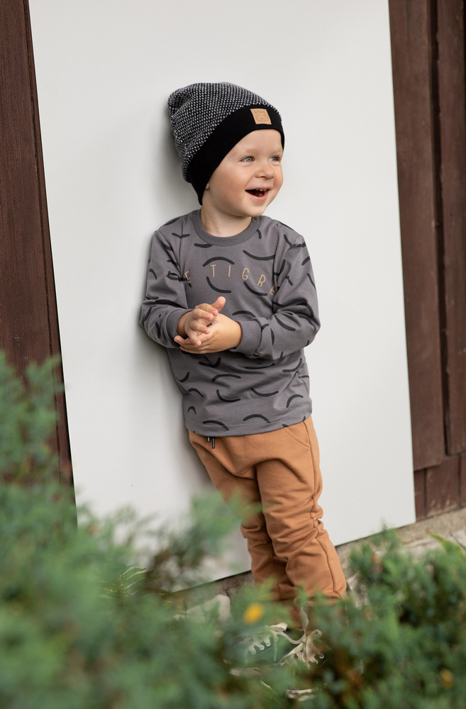 Odpowiedni krój gwarantuje swobodę ruchu, a szerokie ściągacze w pasie i przy kostkach zapewniają komfort i stabilizację na ciele dziecka.