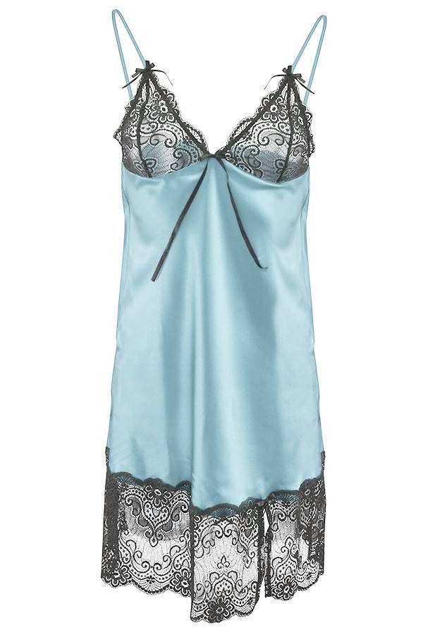 Zmysłowa satynowa haleczka, przód halki tworzą dopasowane koronkowe przejrzyste miseczki, które zmysłowo eksponują dekolt.