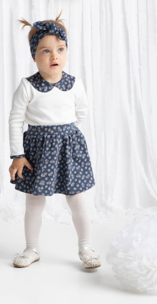 Granatowa spódniczka dziewczęca z 100% bawełny. Idealna na wiosnę i lato. W pasie wszyta jest gumka, która utrzymuje ubranko w odpowiednim miejscu, ale nie uciska w brzuszek. Luźny fason nie krępuje ruchów dziecka i zapewnia komfort noszenia. Spódniczkę można dowolnie łączyć z innymi ubrankami z kolekcji Sonia, tworząc unikatowe stylizacje. Warto o niej pamiętać kompletując letnią garderobę.